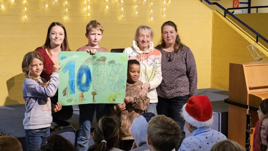Hannelore Nuss, Vorsitzende des Tierschutzvereins Rheinfelden (Baden) und Umgebung e. V., nimmt mit großer Freude und Dank die tolle Spende der Igelstation der Weihermattenschule in Bad Säckingen entgegen.